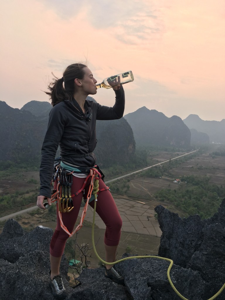 The two months I spent working at GCH was easily one of the best experiences of my life. I think I could have happily stayed for the whole season, still feeling like I had only scratched the surface of the climbing there. With nearly 400 routes and seemingly endless potential, this area has so much to offer. I mean where else can you find a legit roof!? It is worth it for every climber to test their heel hook and knee bar skills at The Roof, and try not to get completely turned around in there. A trip to GCH also isn’t complete without a shot of Laos Whiskey at the top of the multi-pitch, best enjoyed at sunrise. And after a long day of climbing (let’s be honest, mostly sweating), you mosey into the restaurant, order the dinner special (hopefully it’s schnitzel night), pass around some climbOn, and cheers your big Beer Laos to all the sends of the day!
